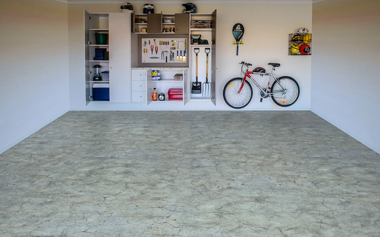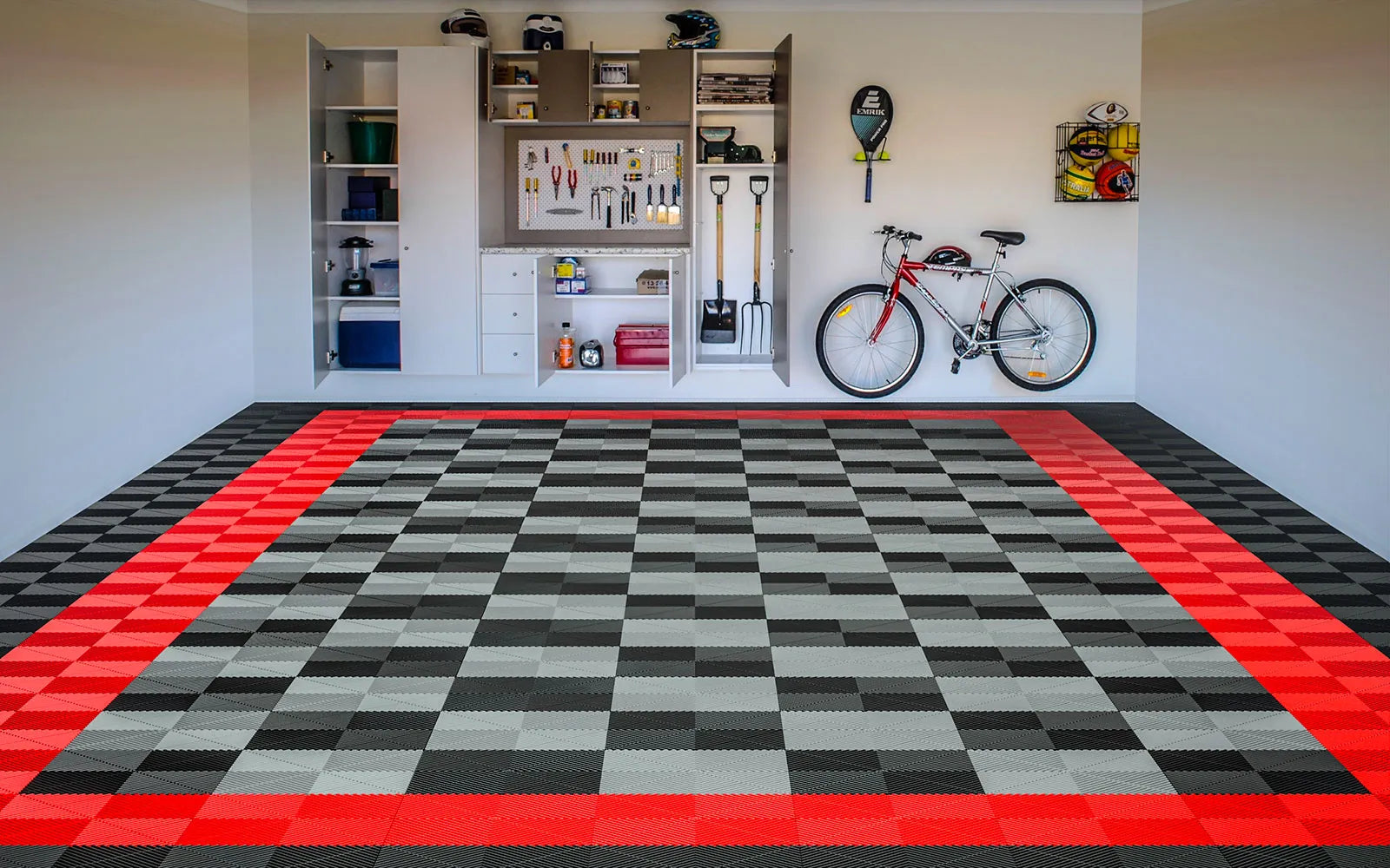 Notre ancien sol de garage était fissuré et ennuyeux. Après avoir installé des dalles Modulux, c'est comme un tout nouvel espace.